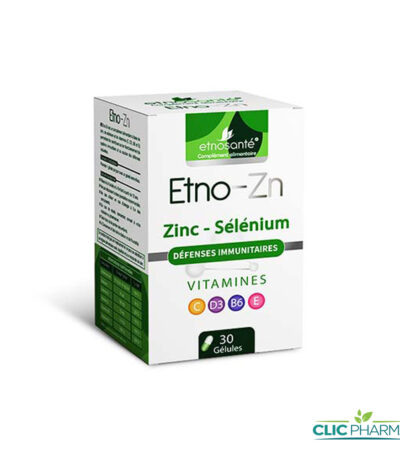 23,088 TND TTC- Etno-Zn est un complément alimentaire associant des vitamines et des minéraux afin de contribuer au bon fonctionnement du système immunitaire et au soutien des défenses naturelles.