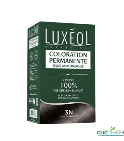 49,172 TND TTCLa coloration permanente Luxéol Kit Coloration 3N Châtain Foncé est formulée sans ammoniaque et offre une tenue longue durée. La couleur est éclante, intense et lumineuse.
