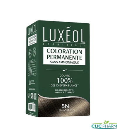 49,172 TND TTCLa coloration Luxéol 5N Châtain Clair permet de fournir une couleur intense et brillante permettant de recouvrir les cheveux blancs. Sa composition est sans ammoniaque et respecte l’équilibre du cuir chevelu et vos cheveux.