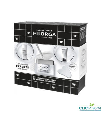 Il comprend le produit phare Filorga TIME-FILLER 5XP en format complet de 50ml, deux formats de voyage de luxe en cadeau, ainsi qu’une pierre de massage pour faciliter l’absorption des crèmes et des sérums.