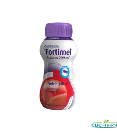 9,139 TND TTCFortimel® Protein 200 ml est un complément nutritionnel oral hyperprotidique, hyperénergétique. Denrée alimentaire destinée à des fins médicales spéciales pour les besoins nutritionnels en cas de dénutrition associée à une maladie. Sans gluten et sans lactose.