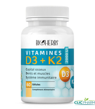 BIOHERBS VITAMINES D3+K2 2000UI (60 GELULES)