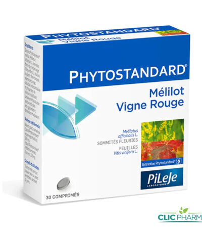 Phytostandard de Mélilot et de Vigne rouge Pileje est un complément alimentaire à base d’extraits de mélilot (Melilotus officinalis L.) et de vigne rouge (Vitis vinifera L.).