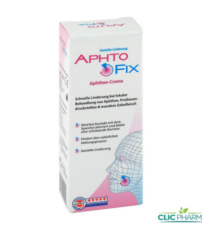 Aphtofix est une crème filmogène utilisée pour le traitement local des aphtes, des ulcères buccaux et des irritations des gencives, notamment celles causées par le port d’appareils dentaires.