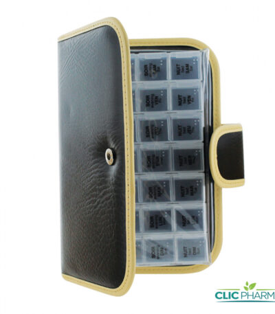 Type de produit : Pilulier semainier format « Livre » en simili-cuir