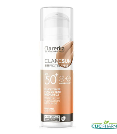 CLARENIA CLARESUN PROTECT PLUS ECRAN FOND DE TEINT FLUIDE TEINTE MEDIUM 02 SPF50+ 50ML
