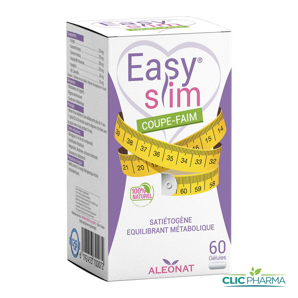 Easy Slim est un complexe naturel conçu par les Laboratoires Aleonat pour accompagner les programmes de perte de poids grâce à une triple action ciblée. Formulé à base de fibres végétales et d’extraits naturels, ce complément agit à la fois sur la sensation de satiété, la régulation du sucre et le tonus général.