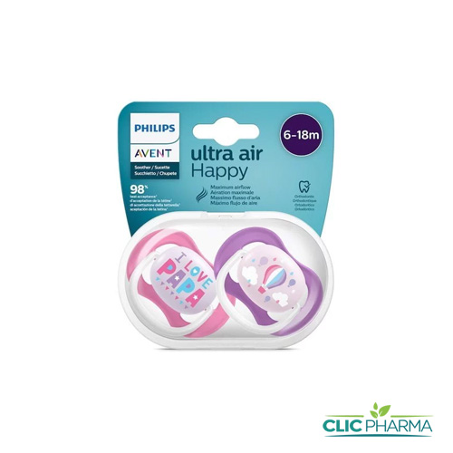 AVENT SUCETTE ULTRA AIR HAPPY 6-18M FILLE (BOITE DE 2)