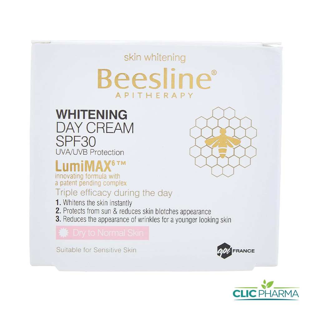 La Beesline Whitening Day Cream SPF 30 est un soin complet de jour qui agit comme un véritable bouclier pour votre peau. Sa formule innovante combine les bienfaits de l’apithérapie à une protection solaire efficace pour prévenir le vieillissement prématuré et l’apparition de nouvelles taches. Elle hydrate intensément tout en travaillant sur l’éclat du teint, laissant la peau souple, lumineuse et parfaitement protégée contre les rayons UV et la pollution urbaine.