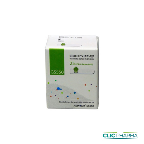 Les bandelettes BIONIME GS550 sont conçues pour mesurer la glycémie avec précision et rapidité. Boîte de 25 bandes pour une utilisation longue durée.