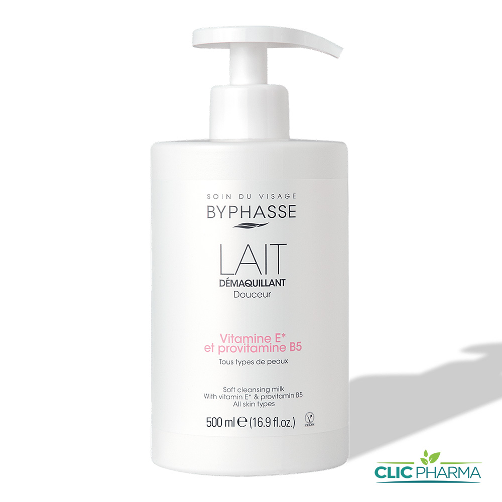 BYPHASSE LAIT DEMAQUILLANT VITAMINE E ET PROVITAMINE B5 POMPE 500ML
