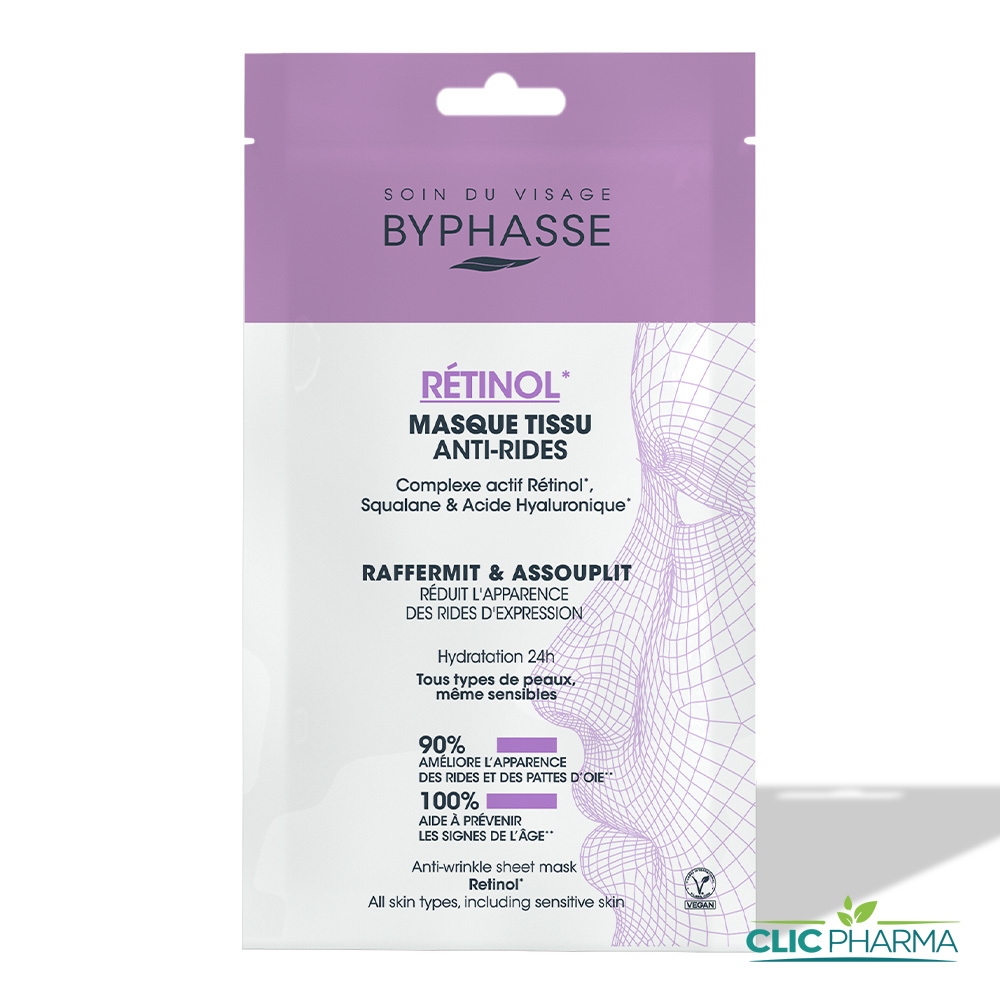 Le masque en tissu anti-rides BYPHASSE est un soin ciblé pour lutter contre les signes du vieillissement cutané. Sa formule « Skin Booster », hautement concentrée en rétinol, agit pour stimuler le renouvellement cellulaire et améliorer l’élasticité de la peau. Le support en tissu permet une occlusion parfaite, favorisant la pénétration profonde des actifs. En seulement 15 minutes, les ridules sont estompées, la peau est plus ferme, lisse et retrouve une nouvelle jeunesse.
