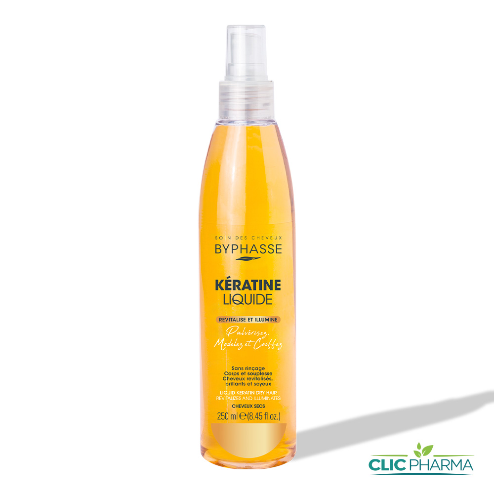 Pour un effet « miroir » maximal, vaporisez la kératine liquide avant de réaliser votre brushing : la chaleur du sèche-cheveux va permettre aux actifs de mieux pénétrer et de sceller les écailles. Si vous avez les cheveux très secs, utilisez-la quotidiennement sur cheveux secs pour redonner un coup de boost à votre coiffure. Pour une routine de réparation intégrale, lavez vos cheveux au préalable avec le Shampooing à la Kératine BYPHASSE.