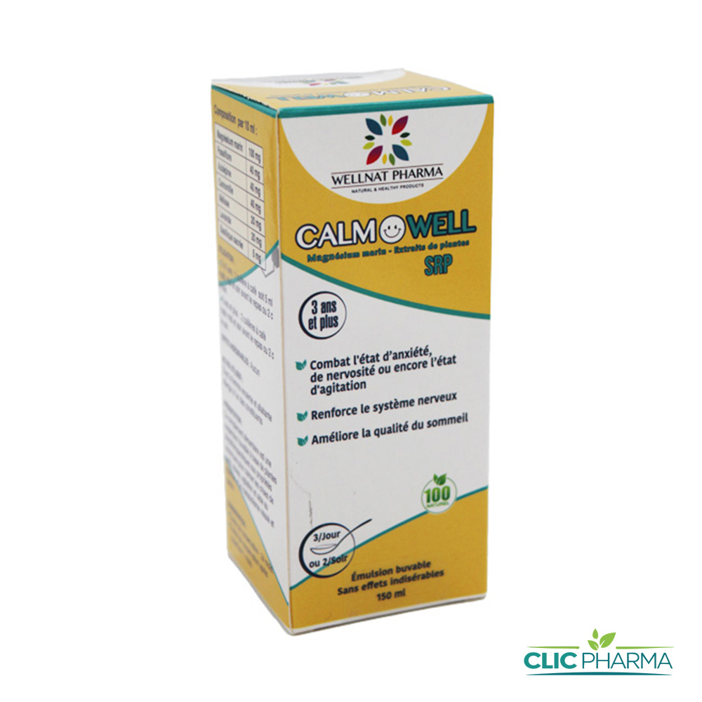 Wellnat Pharma Calmowell Enfant est un sirop apaisant formulé pour accompagner les enfants sujets à l’agitation, au stress ou aux troubles du sommeil. Sa formule douce d’origine naturelle favorise le calme, la détente et un sommeil réparateur, sans provoquer de somnolence excessive.