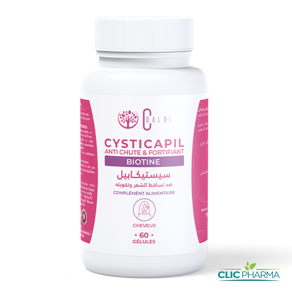 CYSTICAPIL est un complément alimentaire à base de biotine, vitamines et extraits végétaux, spécifiquement formulé pour améliorer l’état général des cheveux, stimuler leur croissance et freiner leur chute. Il agit de l’intérieur pour renforcer la fibre capillaire, soutenir la synthèse de la kératine et lutter contre le stress oxydatif, facteur majeur de fragilisation.