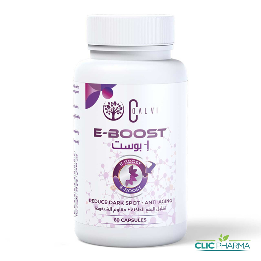 Grâce à une synergie puissante d’actifs végétaux antioxydants et de vitamines ciblées, E-BOOST agit en profondeur pour améliorer l’hydratation cutanée, réduire les taches brunes, calmer les inflammations, lisser les rides et renforcer la protection naturelle de la peau contre les agressions extérieures. Il est particulièrement recommandé en cure de 3 mois pour des résultats visibles et durables.