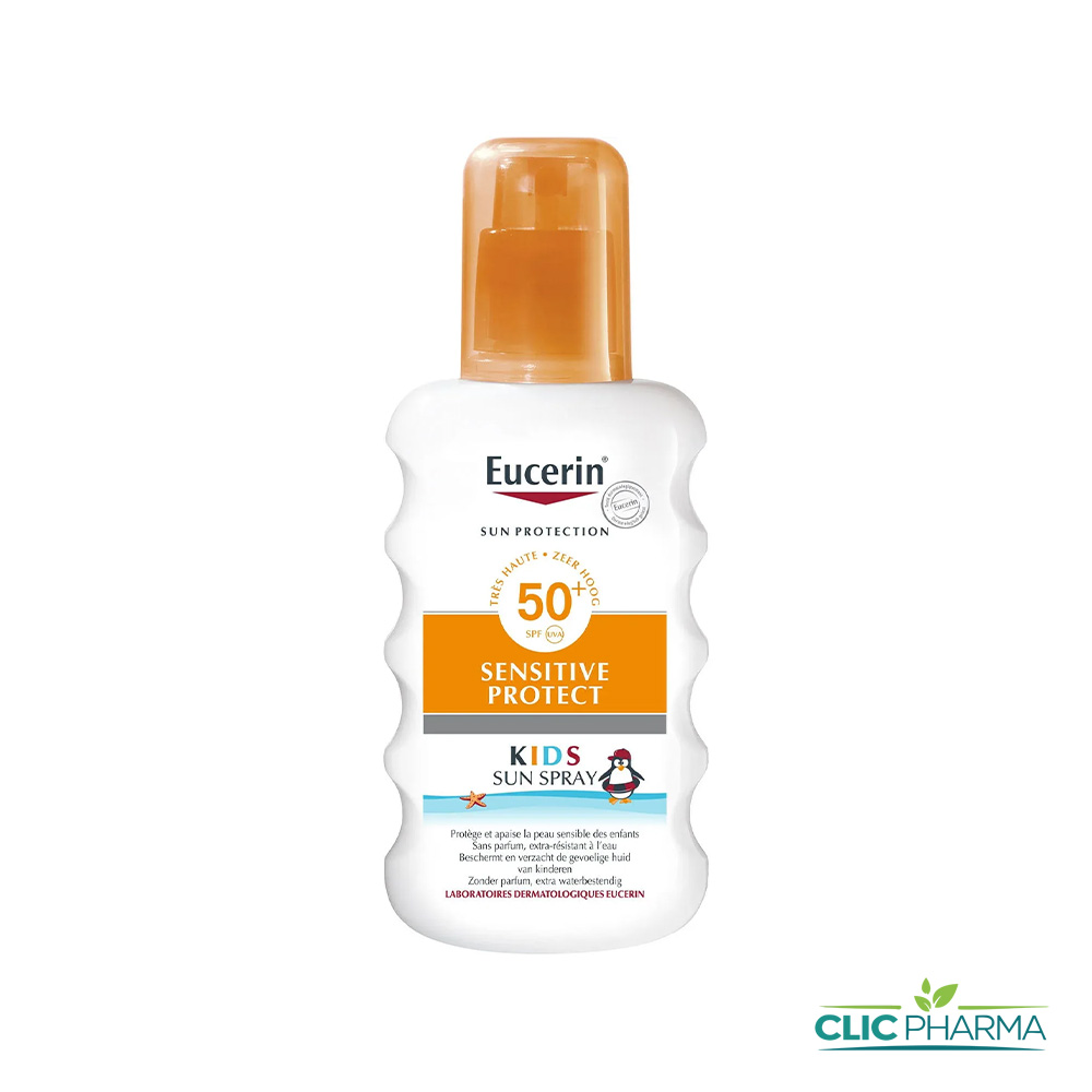 Eucerin SUN PROTECTION SENSITIVE PROTECT KIDS Spray SPF 50+ est spécialement conçu pour protéger la peau sensible des enfants contre les coups de soleil et offre une protection cellulaire biologique pour réduire les risques de dommages à long terme dus aux UV. Il est sans parabènes, sans colorant et sans parfum. Il est également très résistant à l’eau. Cet écran solaire pour enfants offre une protection solaire grâce à plusieurs facteurs : Un système de filtres UVA/UVB hautement efficaces et stables avec Tinosorb S qui protège activement des coups de soleil. Conforme aux recommandations établies par l’UE. L’acide glycyrrhétinique stimule le processus naturel de réparation des cellules cutanées endommagées par le soleil. Un soutien des mécanismes de protection cellulaire grâce à la présence à la Licochalcone A, un anti-oxydant puissant qui protège les cellules de la peau contre les dommages causés par les radicaux libres. De plus, la glycérine hydrate la peau et renforce sa fonction de barrière naturelle.