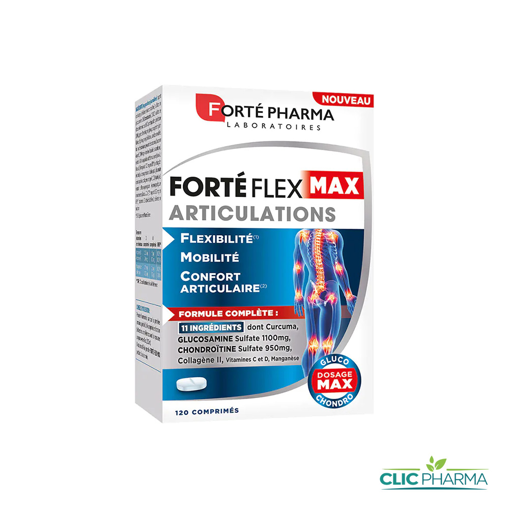 Forté Pharma Forté Flex Max Articulations 120 Comprimés est un complément alimentaire qui vous aide à maintenir confort, souplesse et mobilité articulaire.