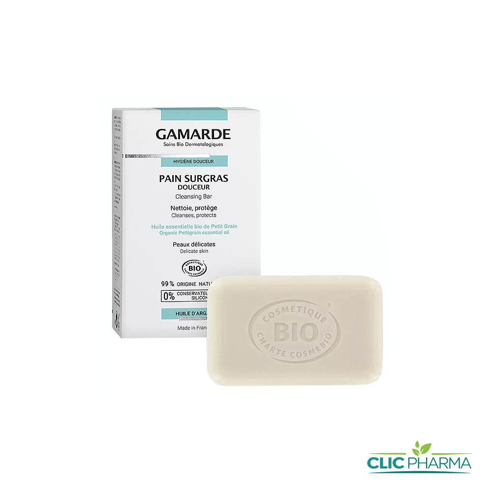 Pain Surgras Douceur – savon surgras ultra doux et nourrissant. Sa mousse fine et onctueuse nettoie délicatement la peau tout en lui apportant confort et souplesse.