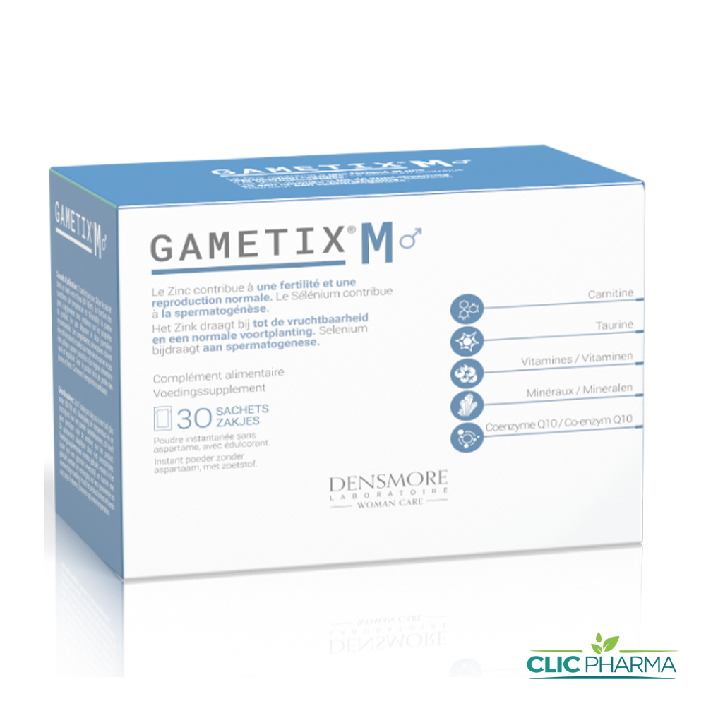 GAMETIX est un complexe nutritionnel de haute précision conçu pour soutenir les fonctions de reproduction des deux membres du couple. La version féminine (Gametix F) se concentre sur la régulation hormonale et la qualité ovocytaire grâce au Myo-inositol, tandis que la version masculine (Gametix M) vise à améliorer la qualité, la mobilité et la protection des spermatozoïdes. En agissant sur le stress oxydatif, qui est l’un des principaux freins à la conception, Gametix prépare le terrain biologique optimal pour favoriser la fécondation et le développement embryonnaire précoce.