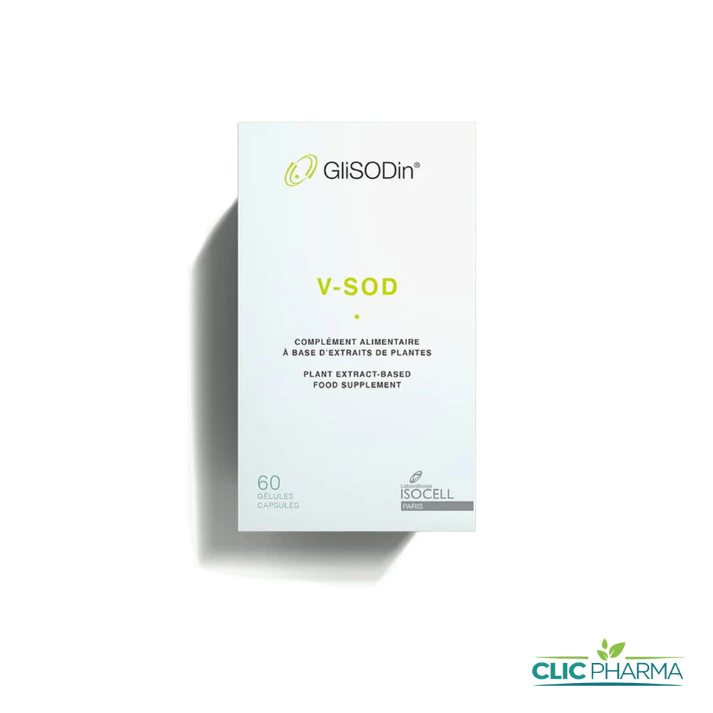 V-SOD est une formule brevetée innovante associant un extrait de melon riche en Superoxyde Dismutase (SOD) gastro protégée et une protéine de blé protectrice. V-SOD est conseillé lors d’un traitement contre le vitiligo en association avec des UV (naturels, en cabines ou avec des lampes UVB).