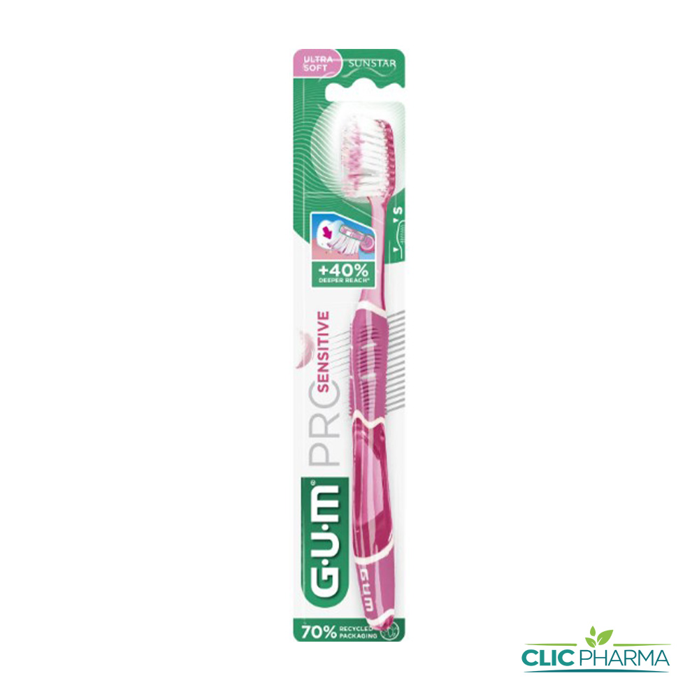 GUM Brosse à Dents Pro Sensitive 510 –  est une brosse à dents ultra soft qui permet un nettoyage en profondeur ultra-doux des dents et des gencives, pour un soin complet au quotidien.