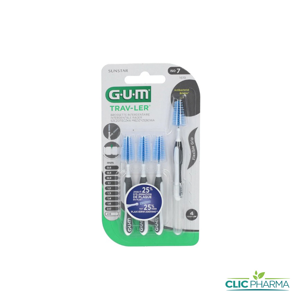 Gum Brossette Interdentaire Trav Ler 2,6mm 4 unités permet d’éliminer les résidus alimentaires et la plaque dentaire en profondeur en atteignant les endroits inaccessibles avec une simple brosse à dents.Alliée indispensable du brossage quotidien, la brossette interdentaire représente une solution pratique et efficace.