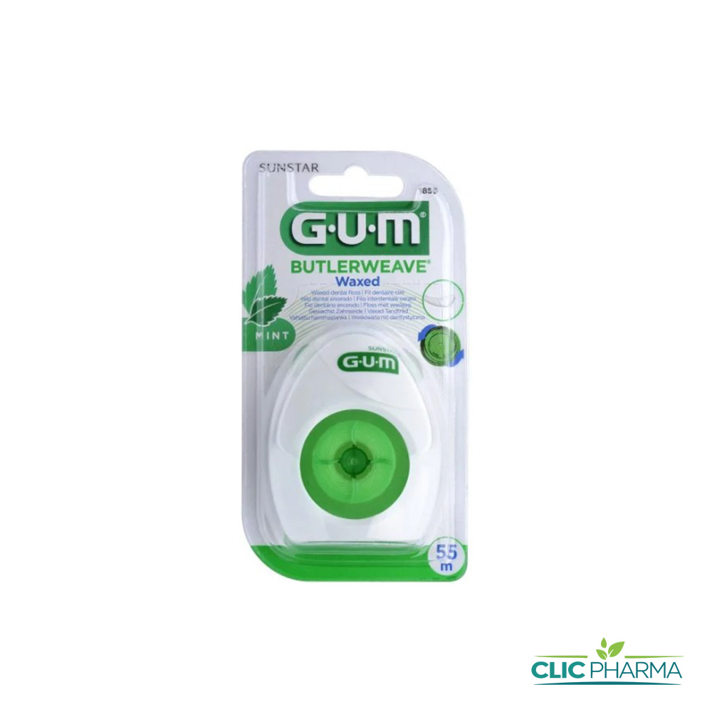 Gum Fil Dentaire ButlerWeave Ciré Menthe permet d’éliminer efficacement la plaque présente dans les zones difficiles d’accès.