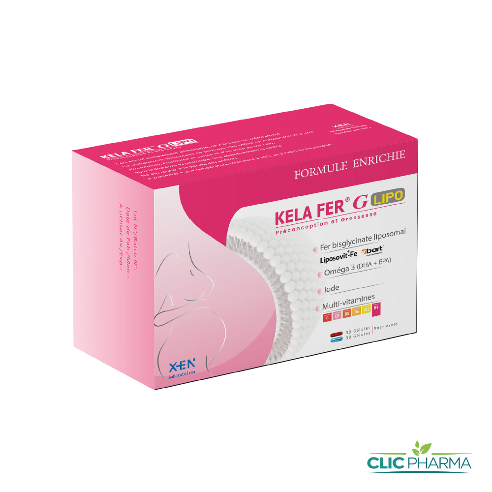 Kela fer GLipo est un complément alimentaire à base de bisglycinate de fer et d’oméga 3 et le complexe vitamine B (B1, B5, B6, B9, B12). Il est adapté aux besoins nutritionnels spécifiques de la femme dès son désir de concevoir un enfant, pendant la grossesse et jusqu’au premier trimestre de la période d’allaitement. Il apporte les nutriments requis pour un développement harmonieux du fœtus.