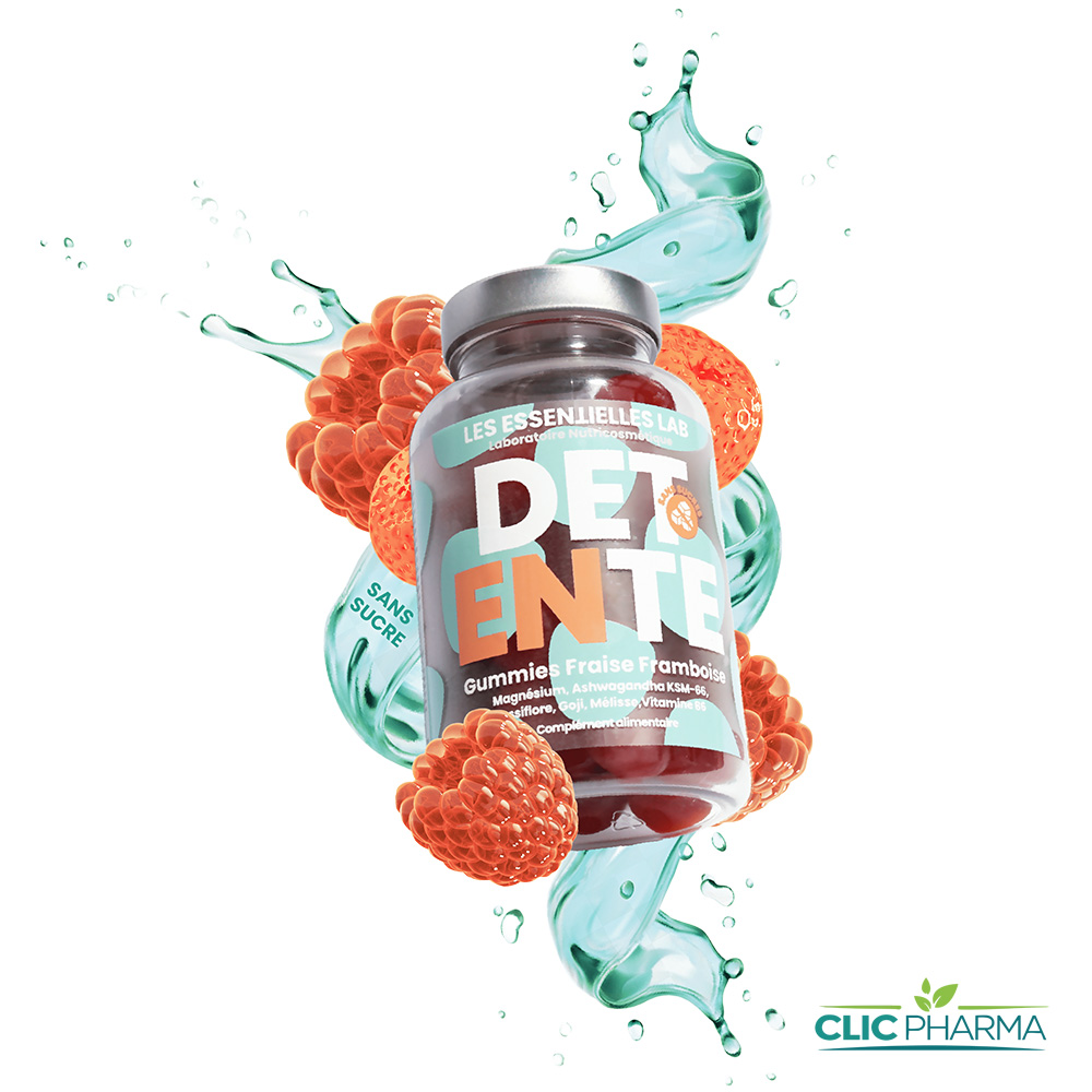 Les Essentielles Lab Détente Gummies Fraise Framboise : votre allié bien-être pour affronter le stress quotidien. Ce complément alimentaire savoureux, au goût de fraise et framboise, est conçu pour vous aider à rester calme et détendu tout au long de la journée. 100 % vegan et sans gluten, il allie plaisir et efficacité pour répondre à vos besoins de sérénité.