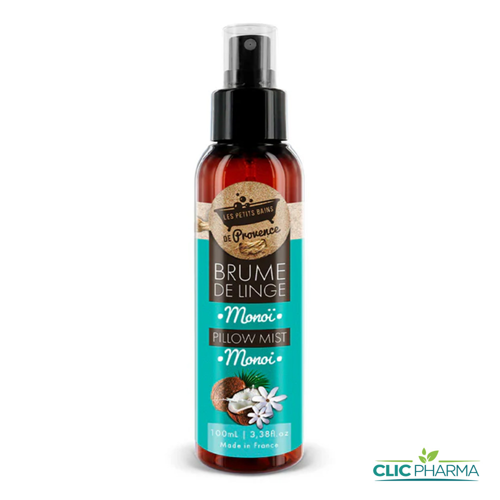 Les brumes de linge parfum Monoï Les Petits Bains de Provence parfument votre linge de maison linge de bain rideaux canapés et également vos draps traversins et oreillers. Pour une ambiance douce feutrée et apaisante. Une seule pulvérisation suffit à libérer tous les arômes soigneusement sélectionnés. Flacon spray 100m. Agiter avant l’emploi. Stocker à l’abri de la lumière. Eviter le contact avec les yeux Senteur Monoï