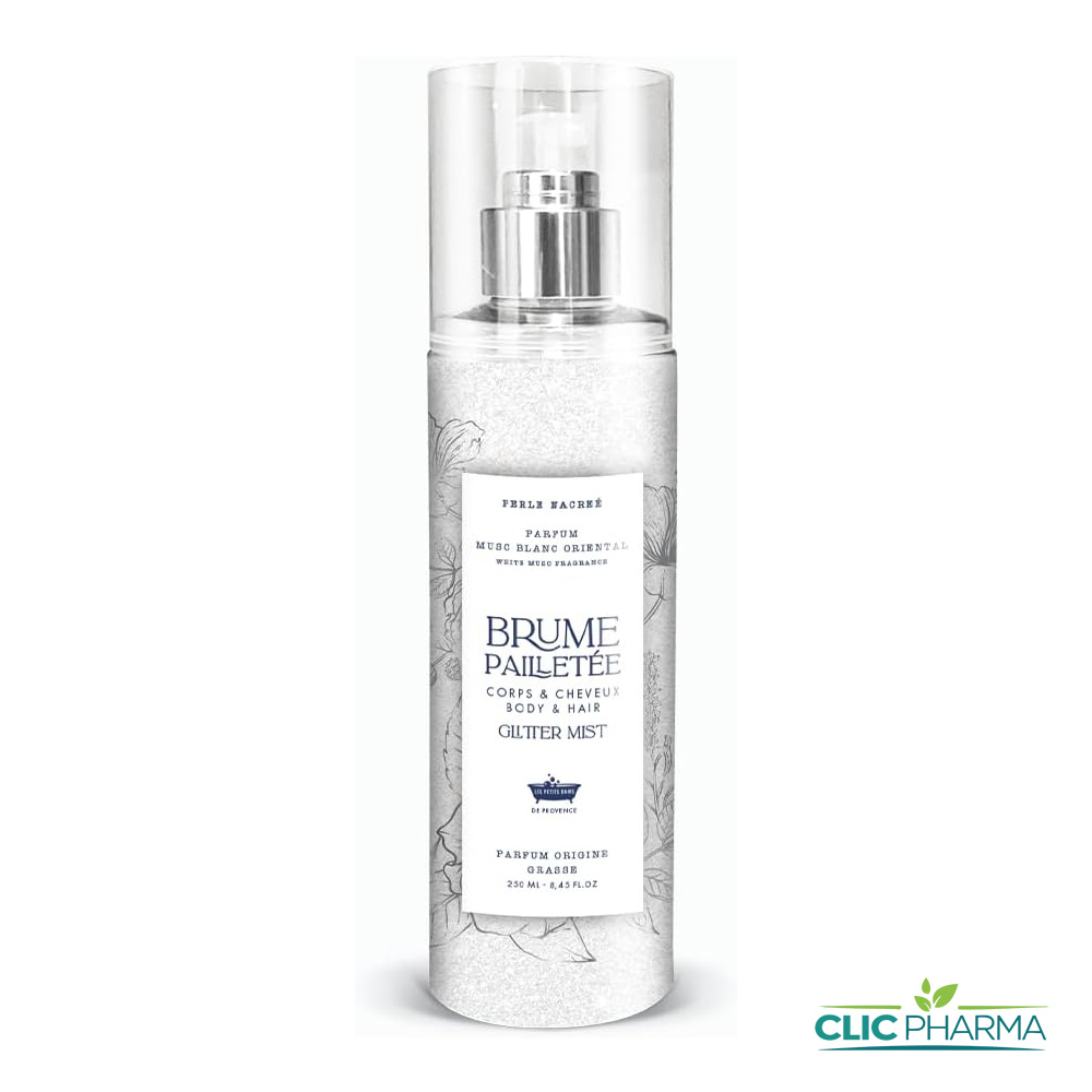 - Grâce à ses paillettes, cette brume sublime votre peau et vos cheveux, créant une aura irrésistible d’éclat et de confiance.