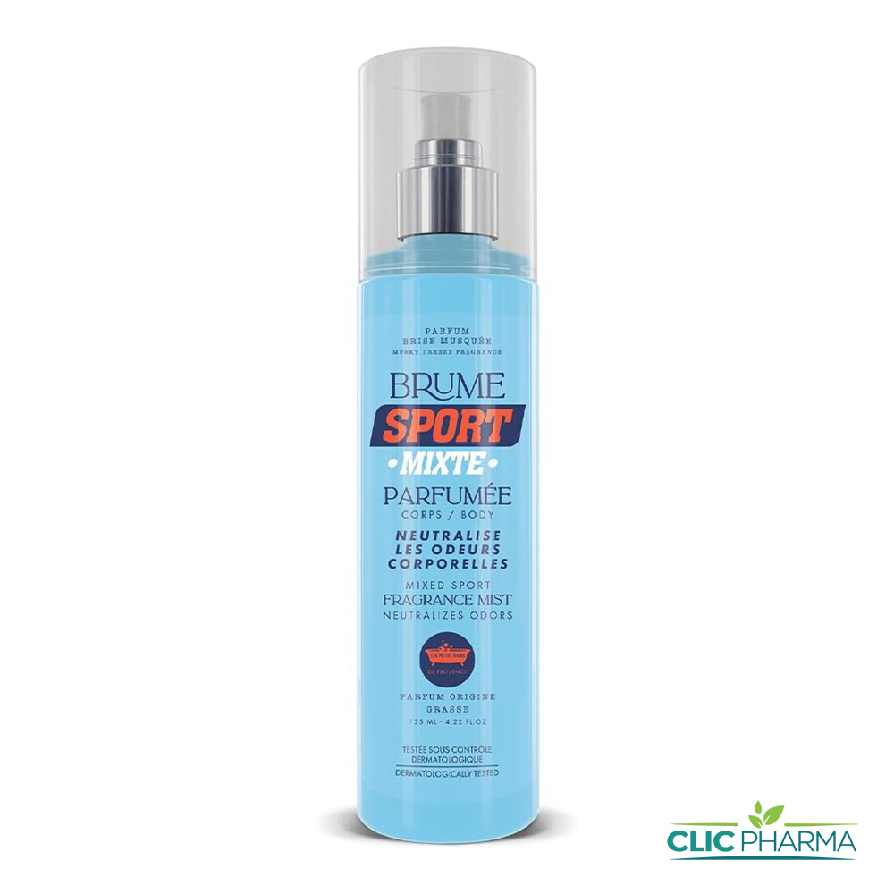 Testée sous contrôle dermatologique et fabriquée en France avec un parfum de Grasse, la Brume Sport Mixte combine performance et senteur dans un flacon pratique à emporter partout.