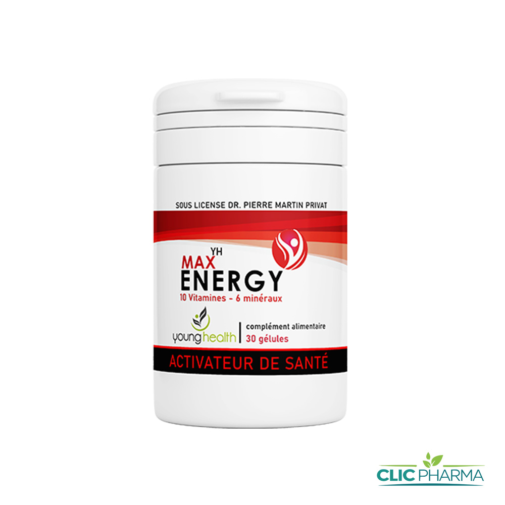 Max Energy idéal pour lutter contre la fatigue en reconstituant les réserves énergétiques de l’organisme afin de bien retrouver votre forme. Boitier de 60 gélules qui doit être utilisé dans le cadre d’un mode de vie sain.