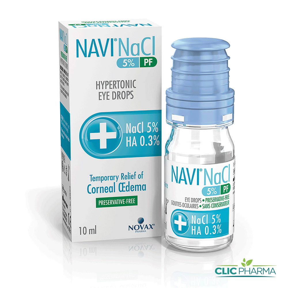 Le NAVI® NaCl 5% PF est une solution ophtalmique hypertonique stérile conçue spécifiquement pour réduire les symptômes de l’oedème cornéen. Grâce à sa forte concentration en chlorure de sodium, elle crée un film lacrymal hypertonique qui draine l’excès de liquide hors de la cornée par effet osmotique, permettant ainsi de restaurer une épaisseur cornéenne normale.Bénéfices principaux
