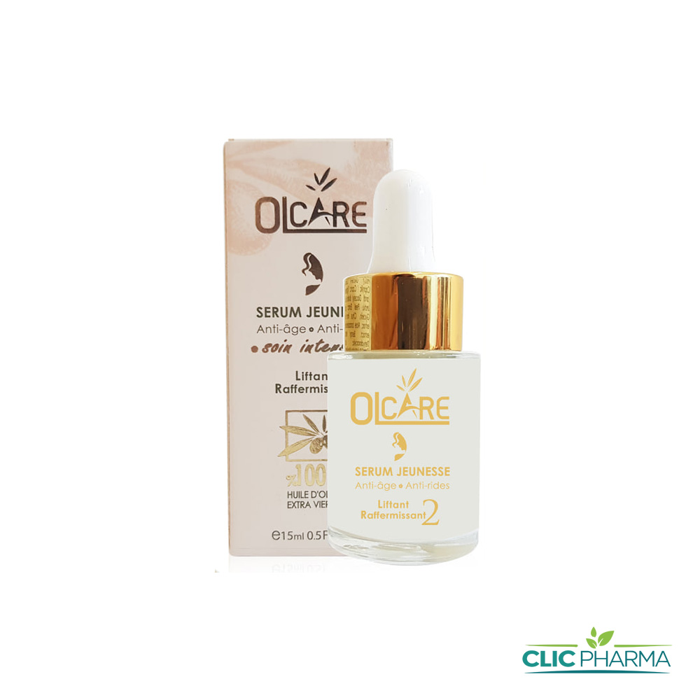 Le sérum jeunesse de OLCARE est un soin intensif anti-âge constituant une armure qui répond à tous les signes qui apparaissent avec le temps sur votre visage .