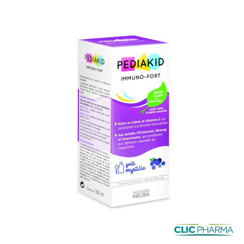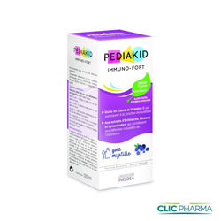 Pediakid Immuno-Fort 125 ml est un complément alimentaire sous forme de sirop aux actifs 100% d’origine naturelle et au goût myrtille qui permet de soutenir l’ensemble des défenses de l’organisme.