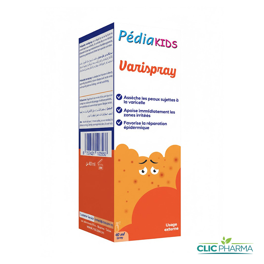 Pédiakids VARISPRAY 40 ml est un spray spécialement formulé pour les peaux irritées par la varicelle. Il assèche les zones affectées, apaise instantanément les démangeaisons et contribue à la réparation de l’épiderme, tout en limitant les risques de cicatrices.