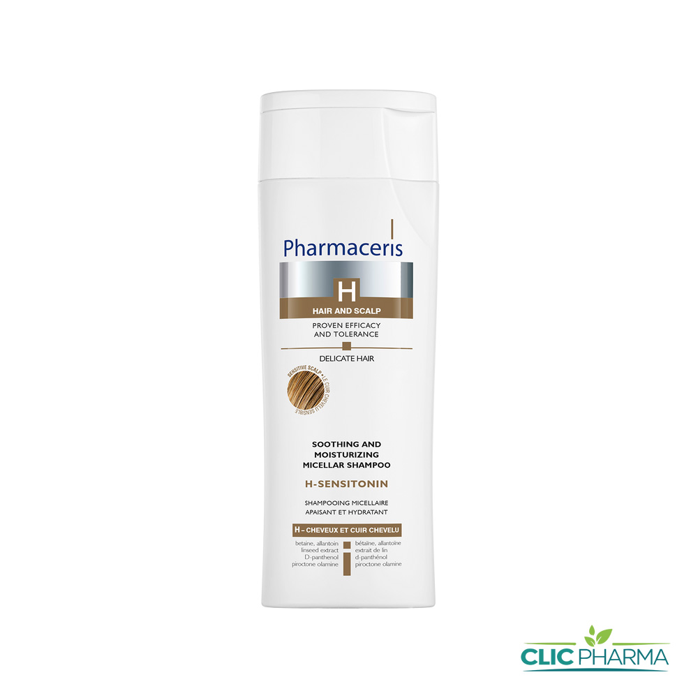 Pharmaceris Shampooing apaisant cuir chevelu sensible H-sensitonine, idéal pour laver et soigner les cuirs chevelus qui ne tolèrent pas les sulfates et sujettes aux irritations, à la sècheresses cutanée, aux démangeaisons et brulures, ainsi que pour les cheveux fins et délicats.