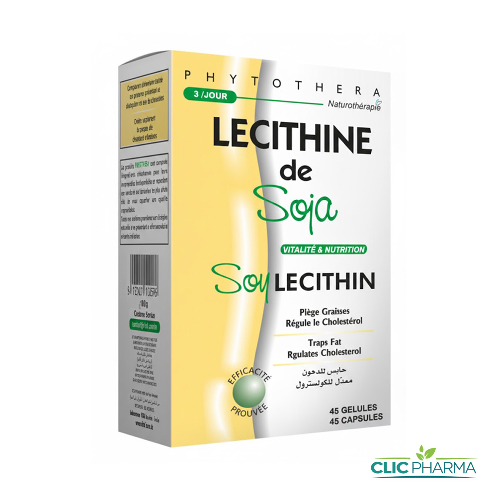 Le produit PHYTOTHERA Lécithine de Soja 45 Gélules est un complément alimentaire conçu pour aider à la gestion du cholestérol et améliorer la concentration et la mémoire. Il agit principalement comme un émulsifiant de graisses naturelles.