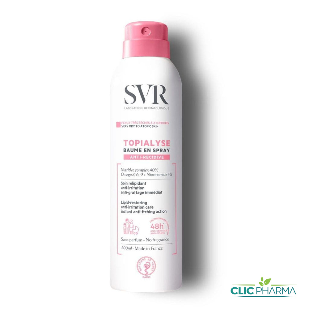 - Topialyse Baume en Spray SVR est un soin relipidant anti-irritation et anti-grattage immédiat.