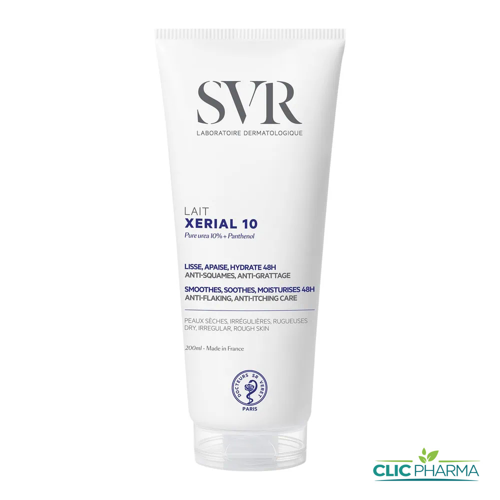 • SVR Xérial 10 est un lait pour le corps anti-squames qui grâce à l’Urée pure 10% élimine efficacement les cellules mortes et hydrate intensément pendant 24h.