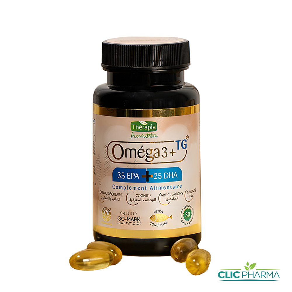 Le Therapia Omega 3+ TG est un complément alimentaire sous forme de gélules conçu pour soutenir la santé cardiovasculaire, les fonctions cognitives et le confort articulaire. Sa formulation repose sur une huile de poisson riche en acides gras essentiels (EPA et DHA) sous forme de triglycérides (TG), réputés pour leur meilleure absorption par l’organisme.