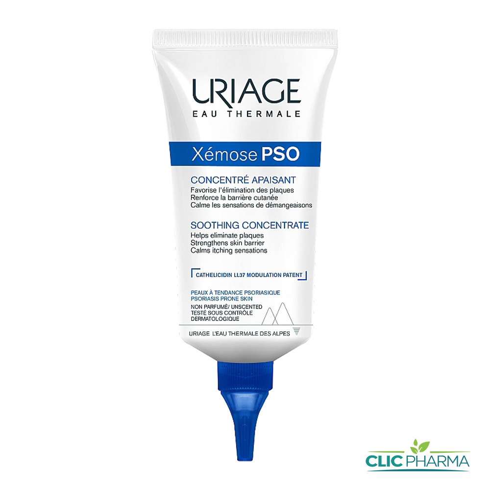 Le concentré apaisant Uriage Xémose PSO est un produit de soin pour le visage et le corps destiné à une application localisée sur des zones qui présentent des plaques rouges et des démangeaisons d’ordre psoriasique. Il développe autour de son ingrédient phare, l’eau thermale d’Uriage, un ensemble d’actifs destiné à soulager les symptômes et à renforcer la barrière cutanée de la peau. Conçue pour être la plus tolérée possible par l’épiderme, la formule de ce soin est composée d’ingrédients pour 96 % d’entre eux d’origine naturelle.