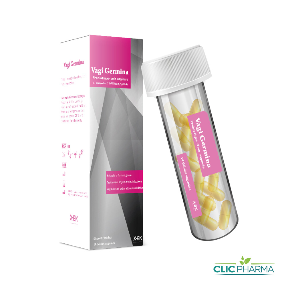 Vagi Germina est un dispositif médical sous forme de gélules vaginales contenant 1 milliard d’UFC de Lactobacillus crispatus. Cette bactérie naturellement présente dans le vagin aide à restaurer la flore vaginale et à renforcer la barrière protectrice de la muqueuse.