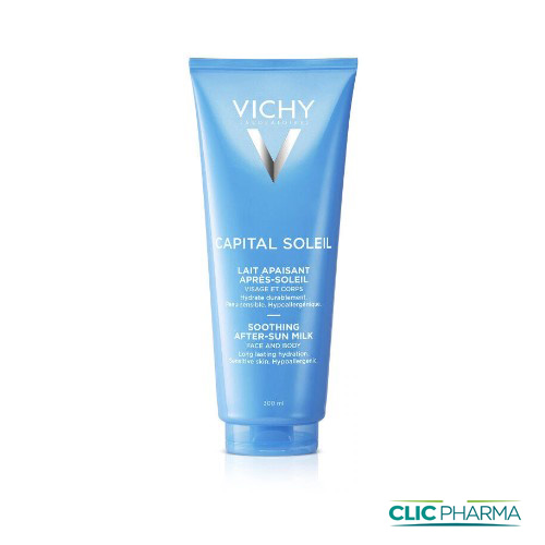 Vichy Capital Soleil Lait Après-Soleil Visage Corps 300 ml est un lait apaisant et hydratant qui compense la déshydratation cutanée due aux expositions solaires quotidiennes et prépare la peau aux expositions suivantes.