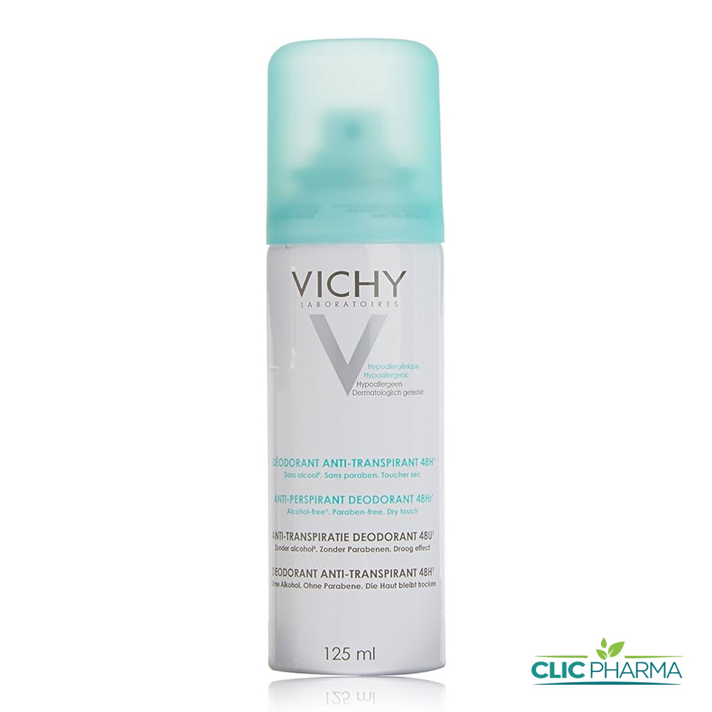 • Vichy aérosol anti-transpirant 48h est un déodorant conçu pour offrir une protection longue durée contre la transpiration et les odeurs désagréables sans inconfort pour la peau.