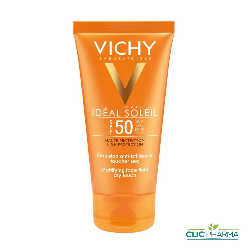 - Vichy capital soleil émulsion toucher sec SPF 50+ est une crème solaire conçue pour fournir un niveau élevé de protection contre les rayons ultraviolets (UV) du soleil, avec un FPS 50.