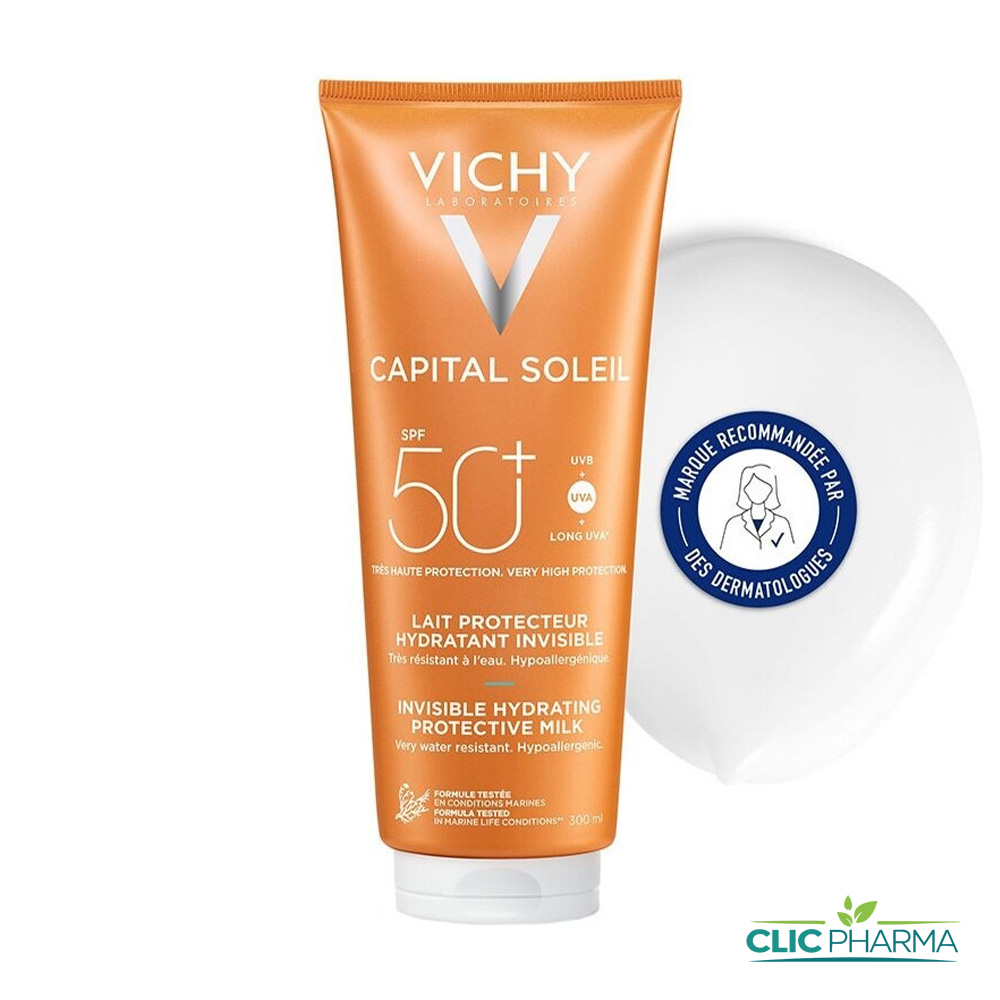Vichy Capital Soleil Lait SPF50+ 300 ml est une très haute protection solaire qui protège la peau contre les UV au niveau cellulaire.