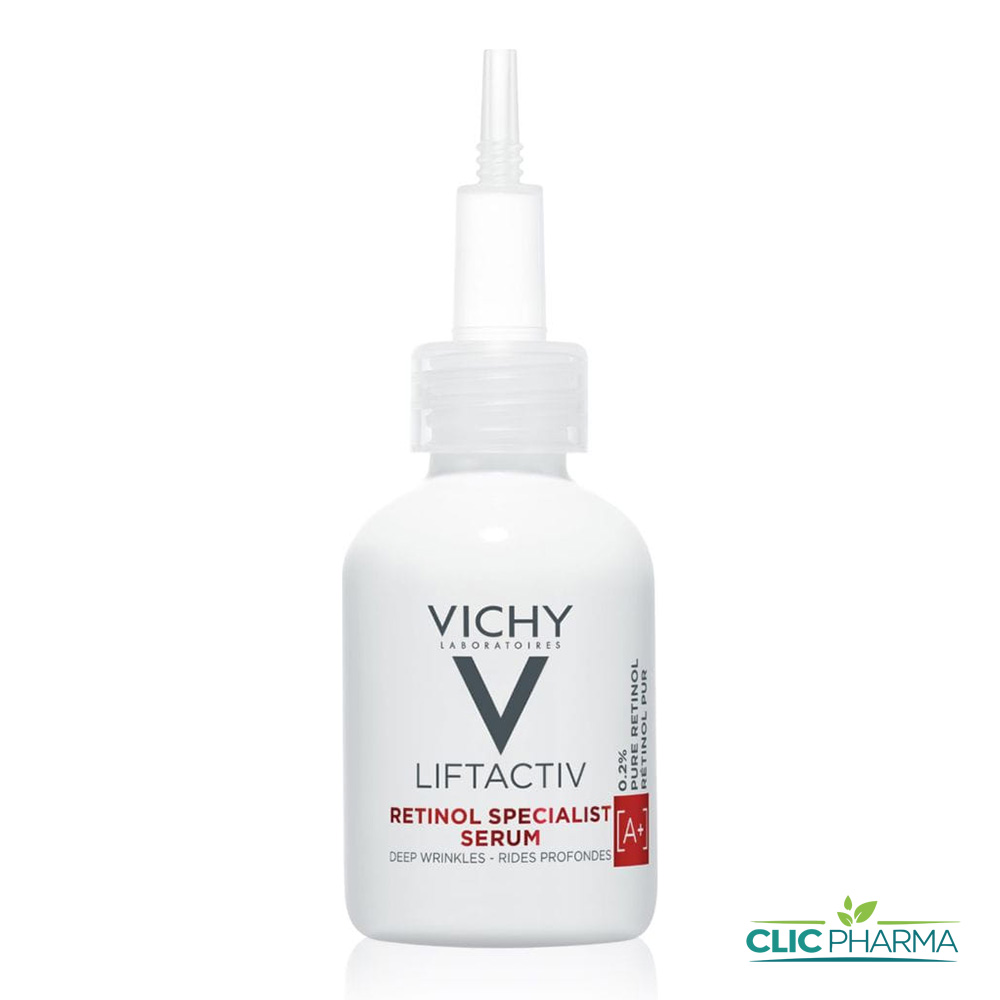 Le sérum Vichy Liftactiv Retinol Specialist est un soin de nuit anti-âge intensif conçu pour agir sur tous les types de rides, même les plus profondes. Grâce à une formule associant 0,2% de rétinol pur et des fractions de probiotiques, il stimule le renouvellement cellulaire, lisse la peau et améliore sa texture. La technologie Retinol Guard permet une pénétration optimale du rétinol tout en minimisant les irritations, pour une peau visiblement resurfacée, uniforme et éclatante dès les premières semaines.